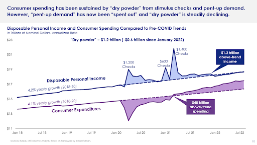And as supply chains fully recover, what this could mean for retailers is surplus. We may be pivoting from an economy where there is abundant spending power but not enough goods to an economy where there’s little money to buy an abundance of goods.