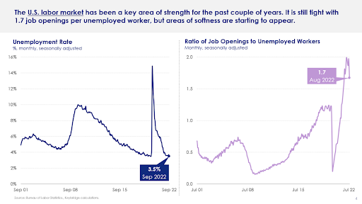 And Wescott shared that the labor market is showing signs of softening. The unemployment rate remains low. However, the ratio of open jobs to unemployed workers is dipping, shown in Figure 2 below.
