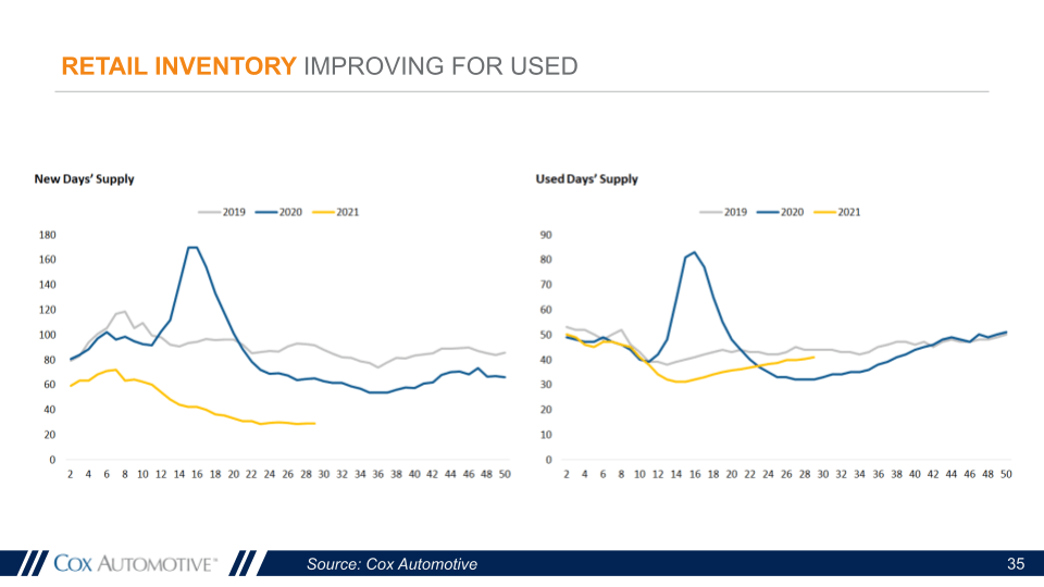 Smoke also indicated that the new vehicle inventory situation is not getting better. He noted that the frenzy mentioned earlier, coupled with the supply challenges in the new vehicle production worldwide, have resulted in the inventory actually continuing to decline. This year, it is down 70% compared to where we were at the same time in our last normal year in 2019.