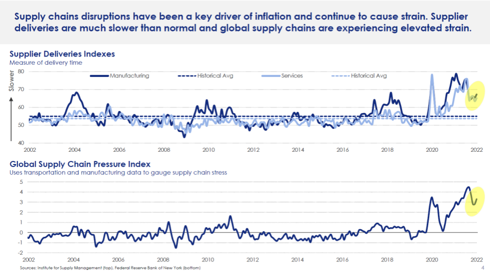 Next, Jensen went over the global supply chain pressure index, shown below, which is a new metric from the New York Federal Government. It is an all-in-one measurement of the supply chain. When looking at the graph, one can see supply chain has never been an issue for the last 25 years until the pandemic.