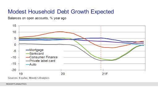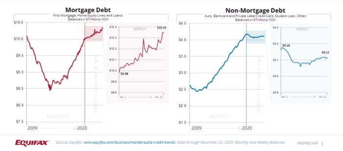 - Non-mortgage debt dropped by $50 billion since March 2020. A reduction in credit card balances drove these results.