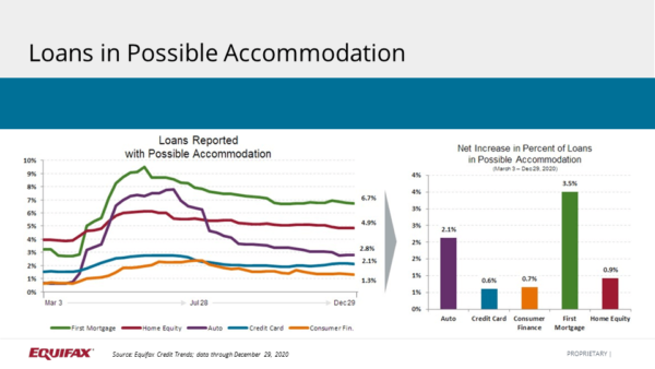 - First Mortgage and Auto loans have had the highest increase in accommodations.