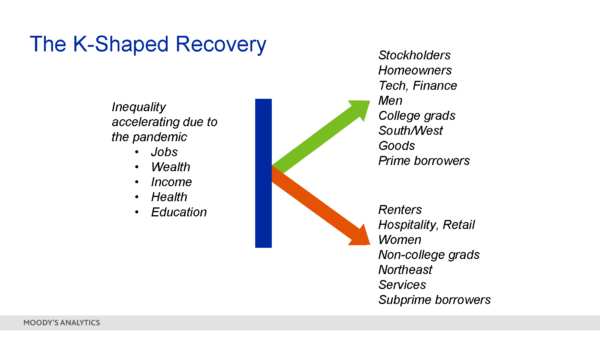 We captured key insights from the January 14 webinar, Market Pulse: Planning in a K-Shaped Recovery, featuring Cris deRitis, Deputy Chief Economist, Moody’s Analytics; Amy Crews Cutts, President and Chief Economist at AC Cutts & Associates; Jennifer Cox, Risk Solutions and Consulting Leader; and Thomas Aliff, SVP of Data and Analytics at Equifax. In this article: