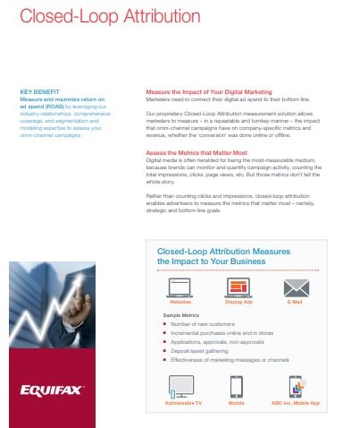 Working with Equifax, you get a one-stop-shop to help you securely onboard and segment your target audience, execute omni-channel marketing campaigns, and measure results with closed-loop attribution.