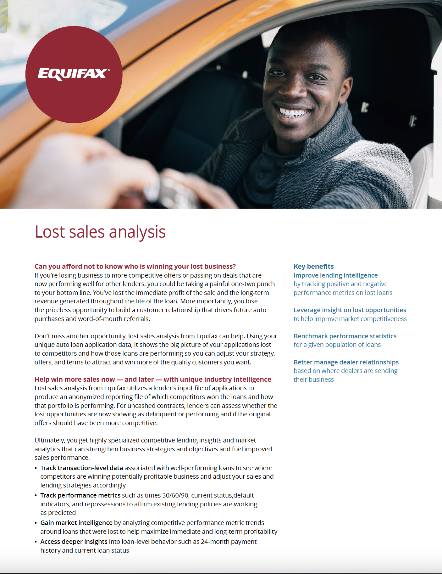 - Track transaction level data associated with well performing loans to see where competitors are winning potentially profitable business, and adjust your sales and lending strategies accordingly