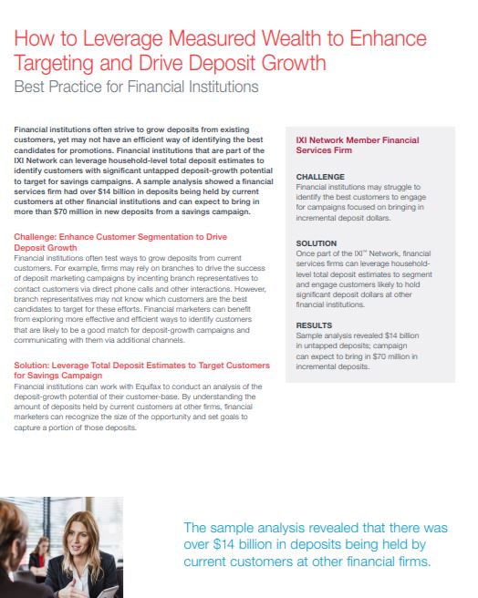 Deposit growth is an ongoing priority for many financial services firms. Firms often strive to grow deposits from existing customers, yet may not have an efficient way to identify which of their customers hold the most opportunity to bring in incremental deposit dollars.