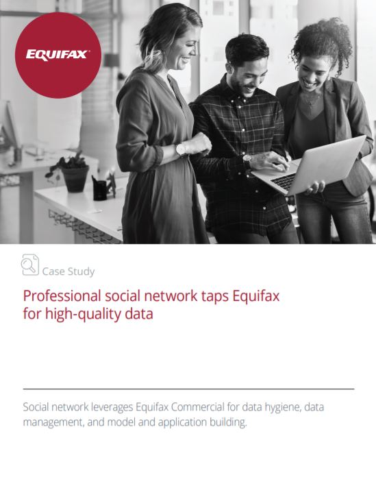 Social network leverages Equifax Commercial for data hygiene, data management, and model and application building