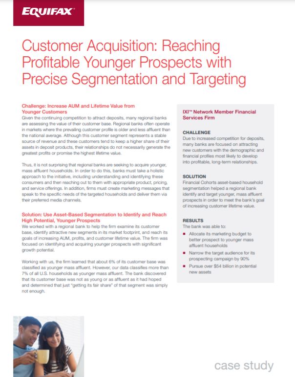 In this case study, we look at one regional bank that used Financial Cohorts asset-based household segmentation to identify and target younger, mass affluent prospects in order to meet the bank’s goal of increasing customer lifetime value.