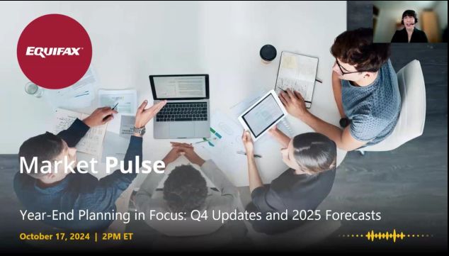The October 2024 Market Pulse webinar continued the conversation started on our September webinar on year-end planning. We took a look at potential outcomes for the evolving scenarios around possible Fed rate cuts, consumer credit trends as we embark on the holiday season, and how long it could take consumers and businesses to feel the ripple effects.