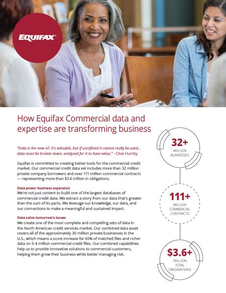 Equifax is committed to creating better tools for the commercial credit market. We create one of the most complete and compelling sets of data in the North American credit services market.