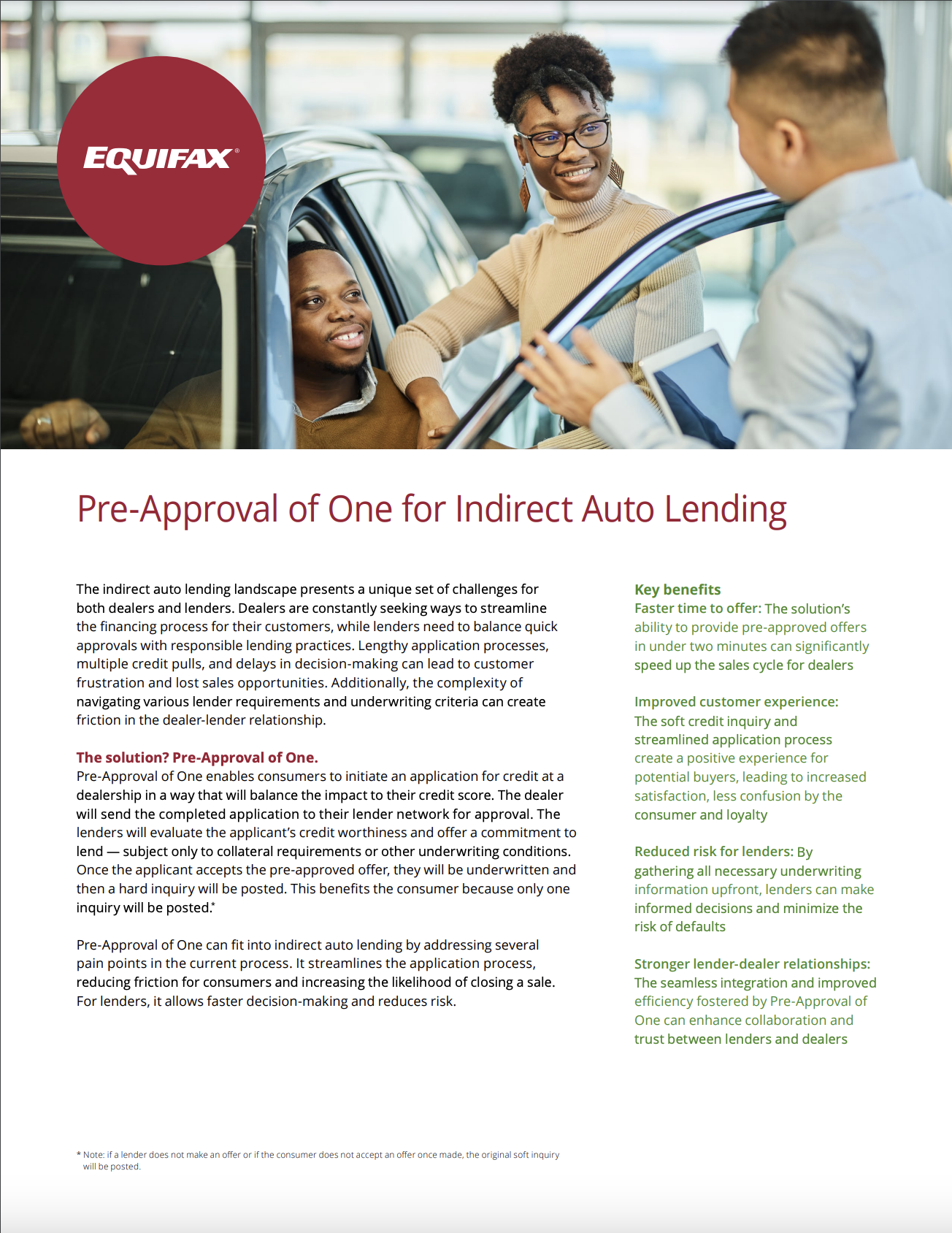- Stronger lender-dealer relationships: The seamless integration and improved efficiency fostered by Pre-Approval of One can enhance collaboration and trust between lenders and dealers