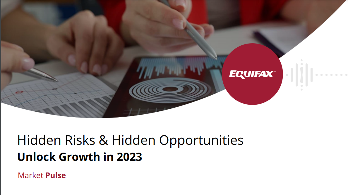 Start 2023 ahead with a macroeconomic and consumer credit update from Equifax Market Pulse. You’ll discover risk and marketing implications on your business and strategies for how you can be first among your competitors to identify hidden risks and hidden opportunities. And we’ll offer up a click down into the Auto and FinTech industries which signal wide-reaching implications across the US business landscape. You’ll also find out how leaders in these industries are using smart data and insights to reach the right new customers with confidence through the downturn.